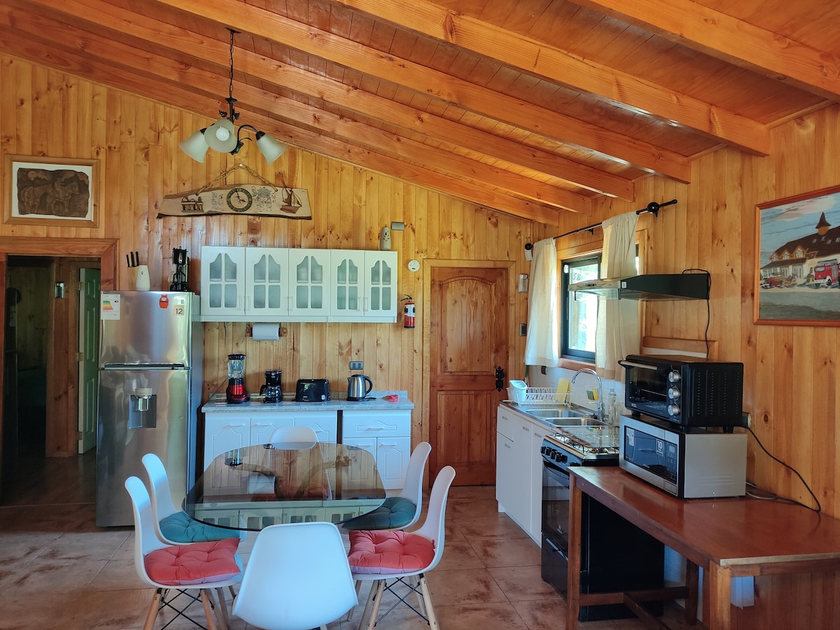 Enjoy my house in the lagoon Sendero Brujo with your family, featuring a children's bike path, a beautiful garden, and Lago Ranco just a 10-minute walk from the house, bordering the lagoon and passing through a native forest. In the quiet town of Calcurrupe, between Llifen and Riñinahue. The lagoon has a sandy beach and is very shallow, making it perfect for families with children. The kitchen has basic things like oil, spices, salt, sugar, tea, and coffee.