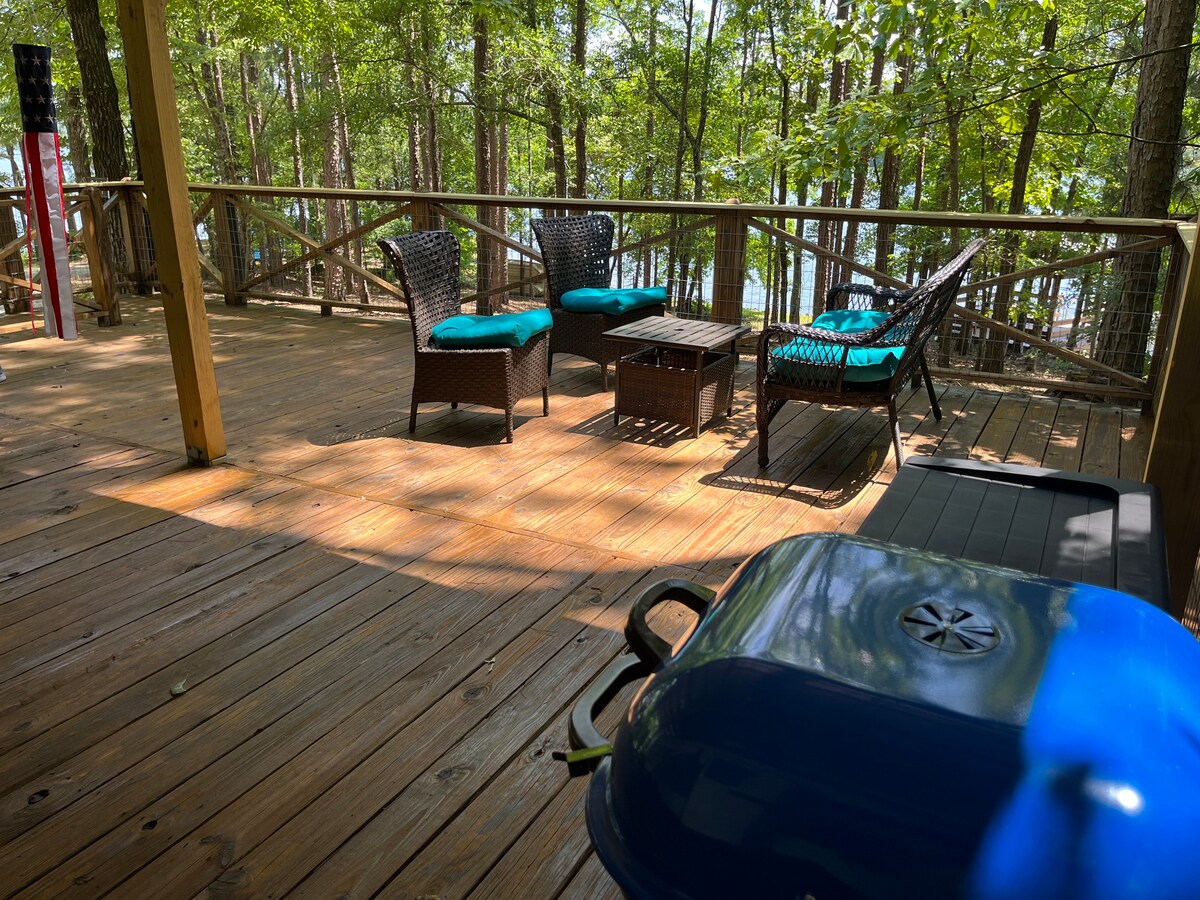Workcrews Welcome! Discounts for longer stays..Family friendly cottage on Lake Wedowee, just steps from your own private dock. We have 3 levels, each featuring a bedroom and bathroom, allowing everyone their own space. Main level features an open air deck& lower level features a screened porch area large enough for the whole family to enjoy. While you are here, enjoy the private cove or take a trip on one of our complimentary kayaks. We are just minutes from all the popular lake spots.