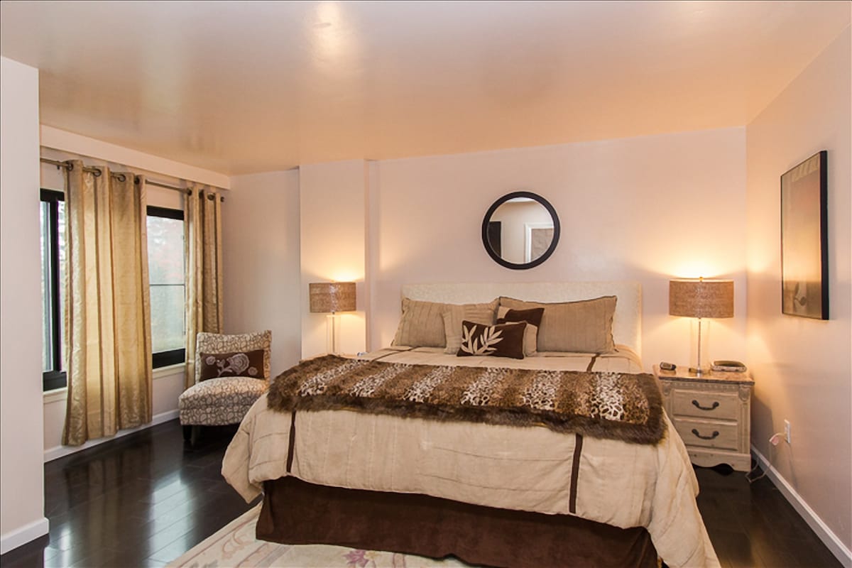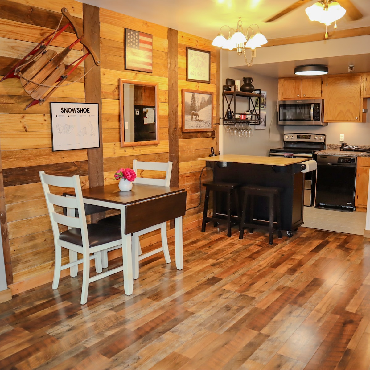 Modern meets old world charm in this newly renovated Highland House condo! Enjoy a fabulously appointed unit with many unique barnwood accents! The kitchen includes a full size refrigerator, dishwasher, microwave, toaster, coffee pot, induction cooktop and a pullout table for two. The king-sized memory foam bed is amazing and at 14 inches off the ground, is the perfect height to store unused luggage.