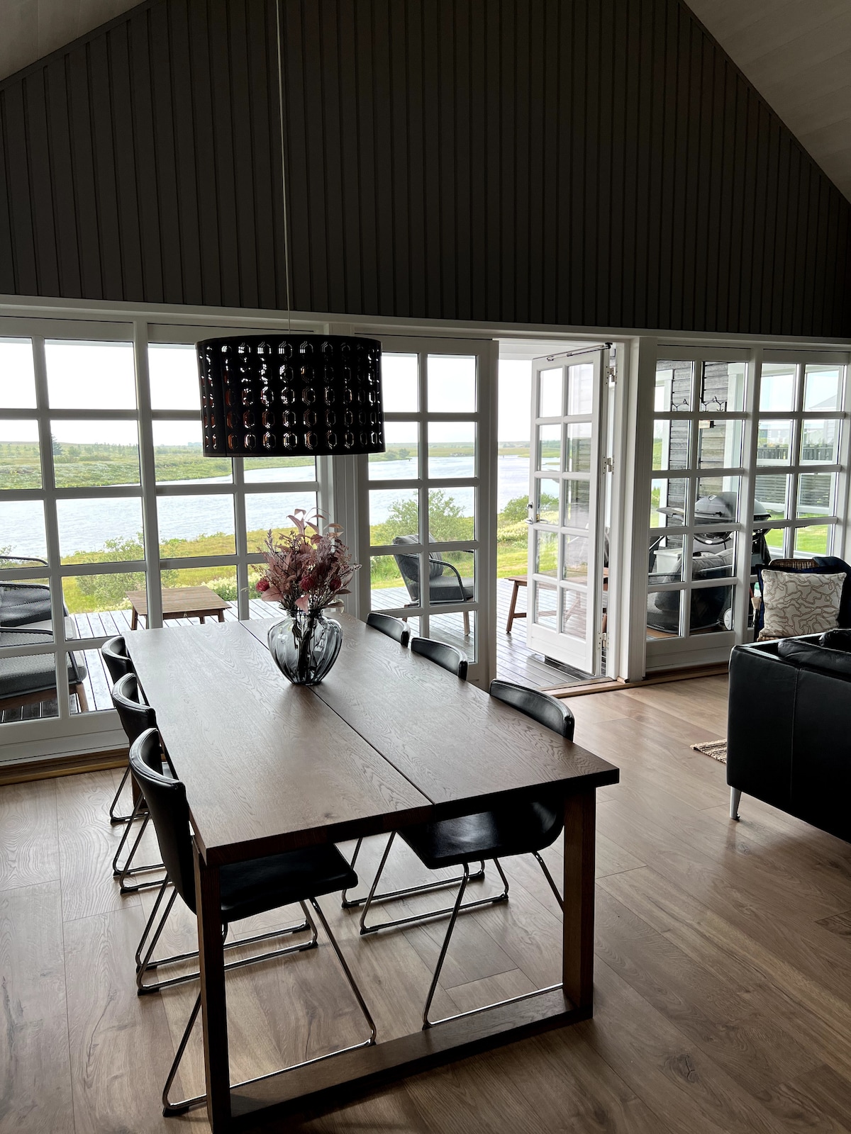 Welcome to our spacious riverside cabin by the majestic Rangá River in Iceland. Nestled along the banks of one of the country's most famous salmon fishing rivers, this cabin offers a tranquil escape for up to six people, making it perfect for families or groups of friends yearning for an unforgettable adventure. The cosy living space is ideal for unwinding after a day of exploration, with its ample seating and a mesmerizing view of the Rangá River. Map coordination: 63°49'59.4"N 20°25'00.9"W