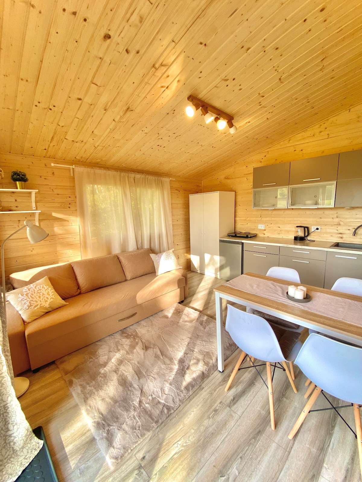 Domki całoroczne w skandynawskim stylu, mniejsza ,,Jagódka” pomieści 4 gości (sypialnia z łóżkiem małżeńskim oraz kanapa w salonie), większa ,,Dziewanna” to domek sześcioosobowy, 2 sypialnie (łóżko małżeńskie i piętrowe) oraz rozkładana kanapa w salonie. Macie do dyspozycji niezliczone hektary ziemi do spacerów, multum atrakcji turystycznych do 40 km i przede wszystkim mamcię naturę, ciszę (nie licząc koncertów cykad) i spokój- jak na Koniec Świata przystało:) Do zobaczenia!