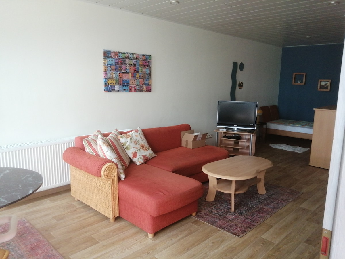 The TV has been renewed! (1/2026) - Smart TV! You can log in to Netflix, Prime... with your data. Centrally located in the southern quarter of Marburg, 3-room apartment (bedroom, kitchen, living room) with patio and hallway. A total of 44 sqm. Separate entrance. Guest couch in the living room can be pulled out for 2 more people. Address: Schwanallee near Lahn. The apartment is on the ground floor of a listed old building.