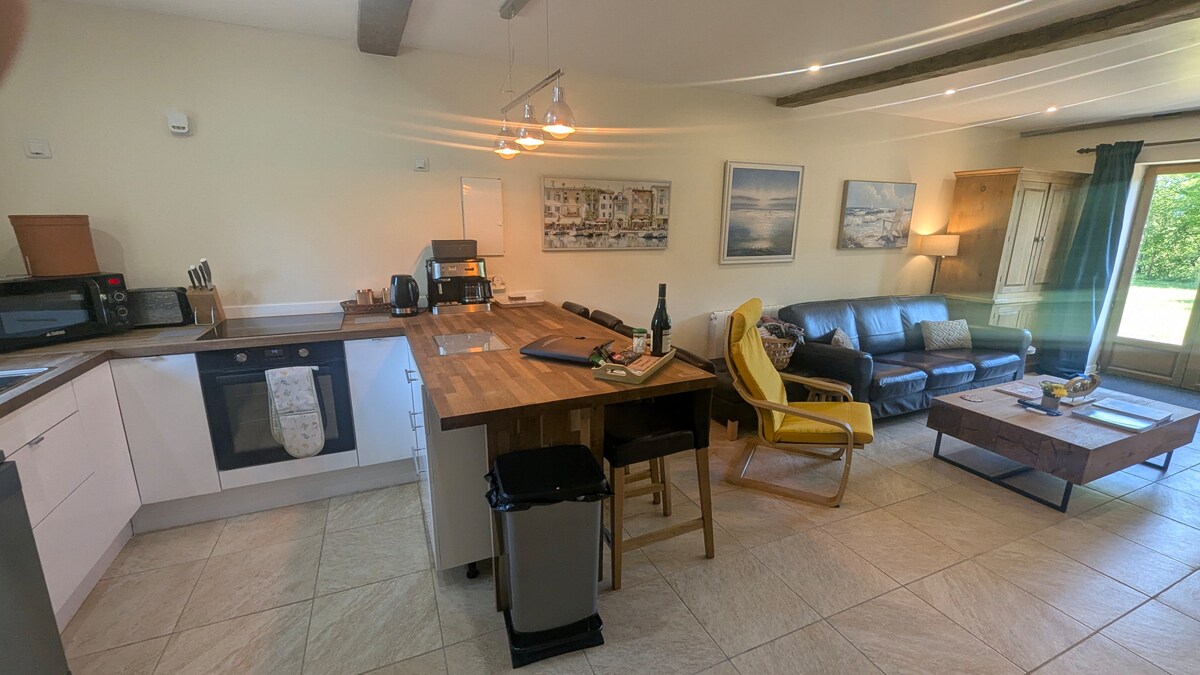 Vous logerez dans l'agrandissement de notre maison de campagne. Vous trouverez tout ce qu'il vous faut pour passer un séjour au calme. Logement spacieux avec une cuisine, une salle de bain avec douche à l'italienne, un couchage clic-clac en bas idéal pour les enfants et une chambre en mezzanine non fermée à l'étage. Enfin vous profiterez d'une magnifique vue dans le salon avec également un accès terrasse.