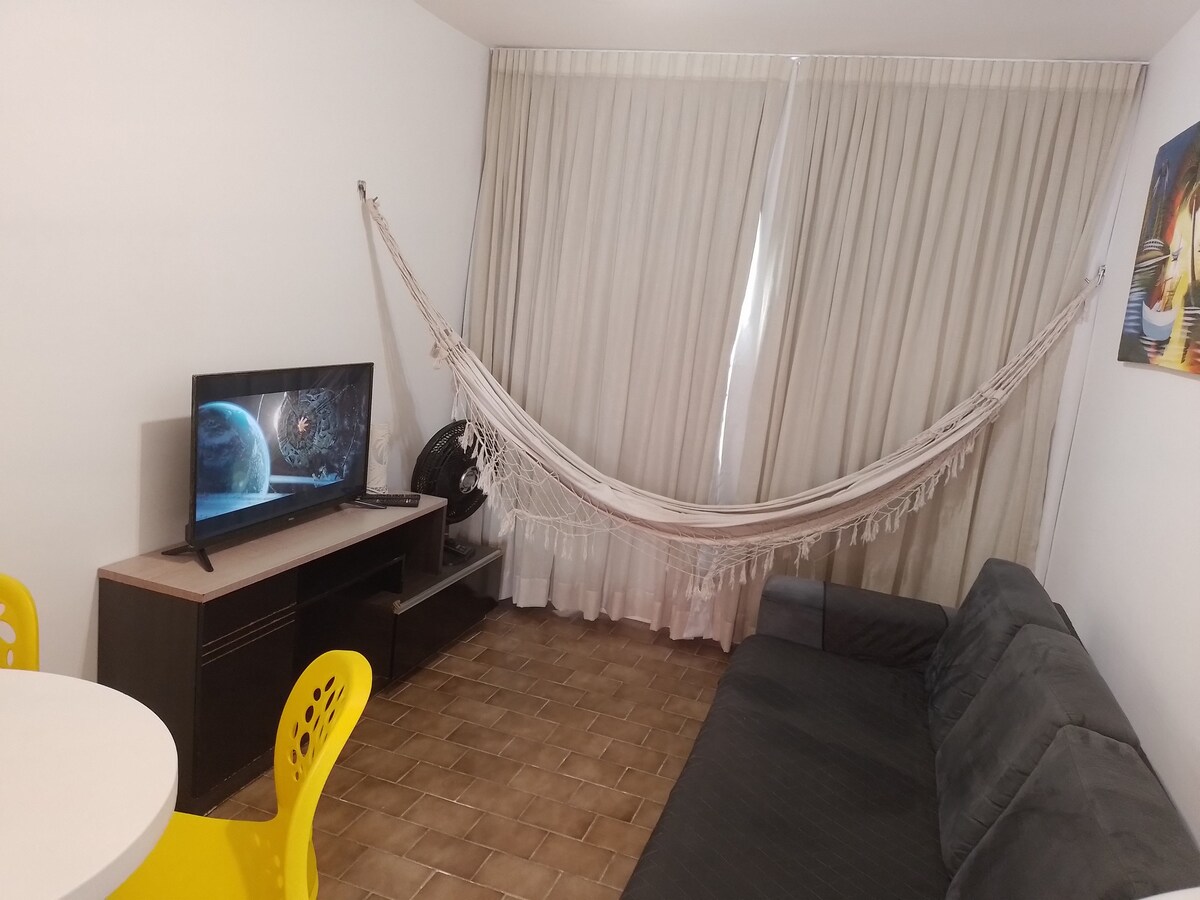Aconchegante e funcional com ótima localização. 🌿 O que você encontra: • Quarto com cama de casal, ar-condicionado e guarda roupa • Sala com sofá-cama, TV e Wi-Fi • Vista para o mar • Cozinha com utensílios básicos, máquina lava e seca, liquidificador, microondas, geladeira, fogão • Chuveiro quente •Elevador •Portaria 24h • Piscina • Estacionamento • Restaurante e minimercado 📍Localização: à 50 metros da praia, cercado por supermercados, padarias, farmácias, restaurantes e cafés.