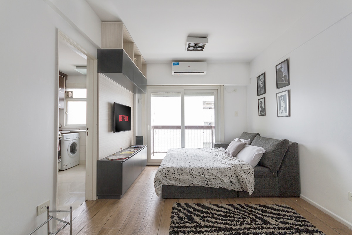 Beautiful brand new studio, fully furnished with excellent quality equipment -TV 32' with cable/Netflix, WIFI 100 MB, A/C hot-cold, King Size bed, desk, full kitchen, -in a Hotel style building with 24 Hs security, swimming pool, Gym, laundry. Located in the heart of Palermo Soho: 200 mts. from subway D/Plaza Italia (Santa Fe Av.), close to stores, bars, restaurants, shopping malls, parks, museums and with easy access to downtown and many touristic spots!