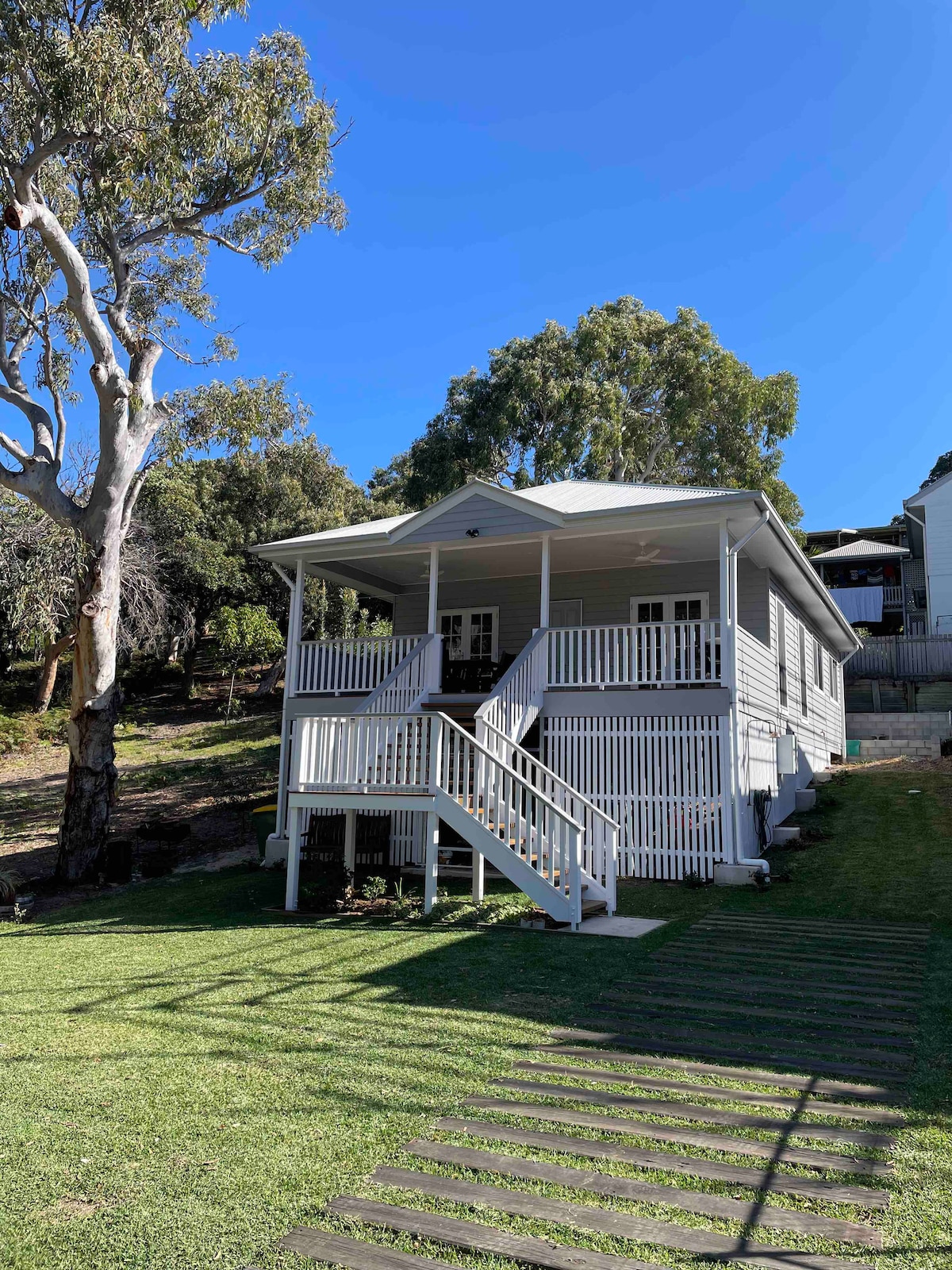 ✅ 180° water & city views from multiple rooms ✅ Epic over-water sunsets – rare East Coast gem ✅ Outdoor entertaining – fire pit, hammocks, BBQ ✅ A luxury full-body massage chair ✅ Spacious private ½ acre hilltop block ✅ Sleeps 11 across 5 bedrooms with quality bedding, 5 x A/C ✅ Wildlife – kangaroos, gliders, eagles ✅ Entertainment – WiFi, Foxtel, games, books ✅ Fully equipped gourmet kitchen with Nespresso machine ✅ 3 mins to ferry, shops & calm beaches ✅ Book side-by-side houses - 23 guests!