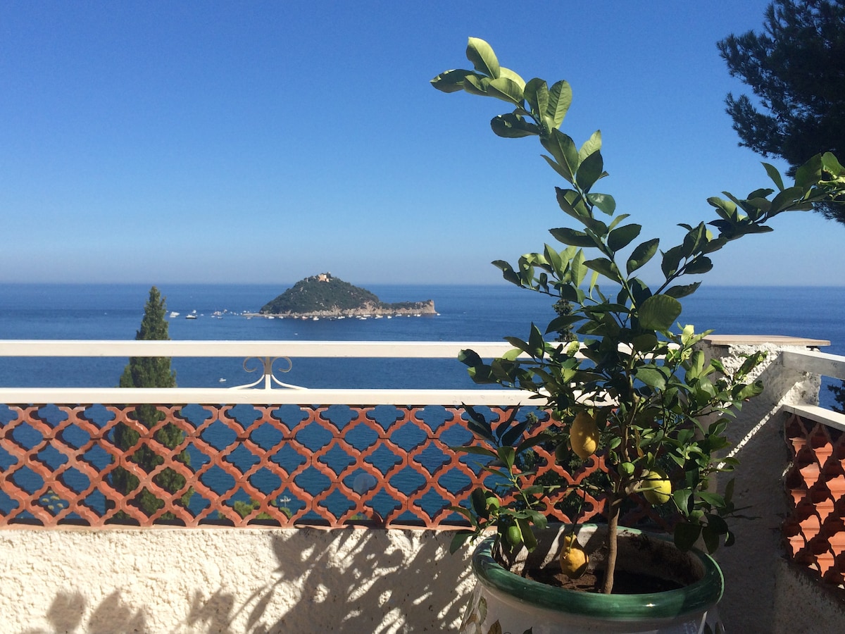 Small independent house full of charm, just had a complete renovation, bedroom, bathroom, living room with kitchen area, all with a splendid sea view with large terrace. Two minutes for the beach, located in a Mediterranean garden, part of the property of an old English villa dated in 1850. Air conditioned and solarium.
