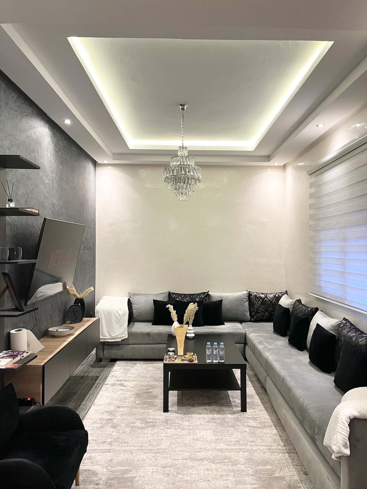 Profitez de votre séjour dans un appartement moderne et bien meublé à côté de toutes les commodités d'une nouvelle résidence. Il dispose d'une chambre équipée d'un home cinéma 4K, d'un salon, d'une salle de bain, d'une cuisine américaine et d'une petite terrasse. • Climatiseur performant • Accès rapide à Carré Eden, Majorelle, restos • Home cinéma immersif Marrakech vous accueillera toujours. 😊 En plus, une connexion Internet 5G est incluse pendant votre séjour.