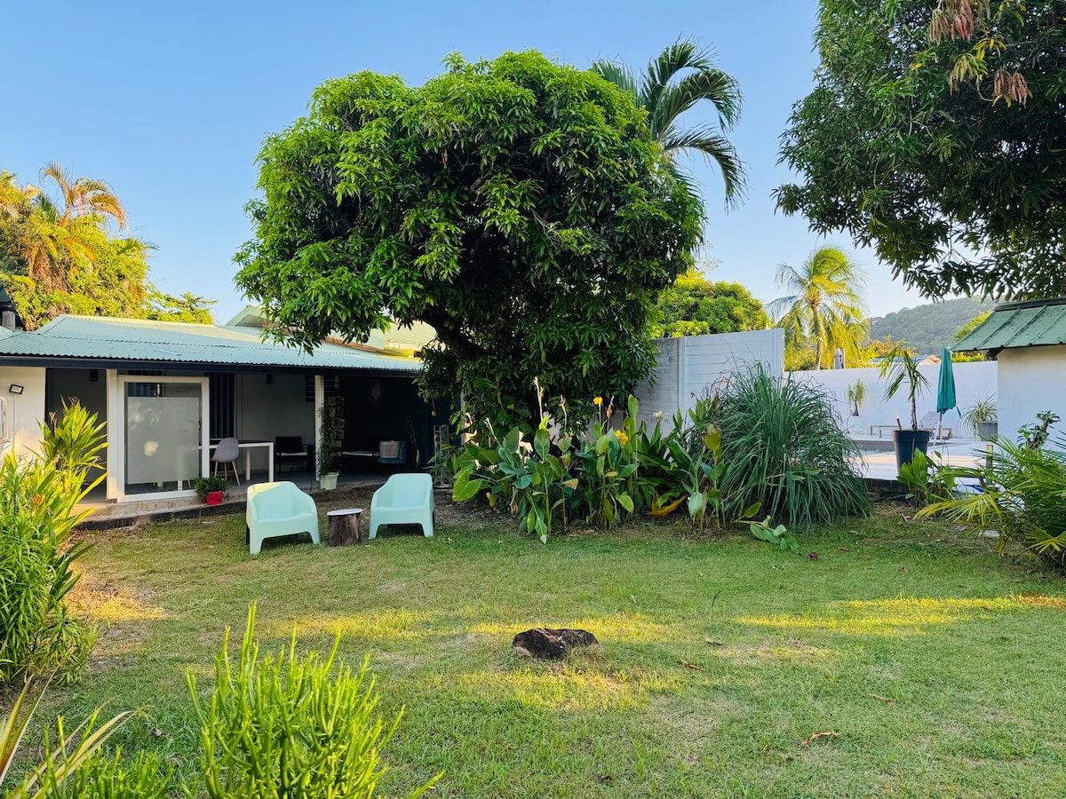 Enjoy the comforts of an air-conditioned apartment, and outdoor life on a pleasant terrace in a tropical garden. Independent accommodation, ground floor , from the back of the house. Well-equipped kitchen. Towel linens provided