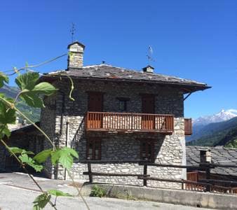 A 10-minute drive from Courmayeur, the conservative renovation of this "Ancient Baita" gives a unique and exclusive space. Independent cabin on three sides in a sunny village. Accommodation on two floors. Parking in front of the house, convenient and free. Ground floor: entrance, double bedroom with wood-burning stove and bathroom. First Floor: bright and panoramic living room with kitchen, working wood-burning fireplace, high ceilings, large windows and two balconies with open views of the valley and mountains.