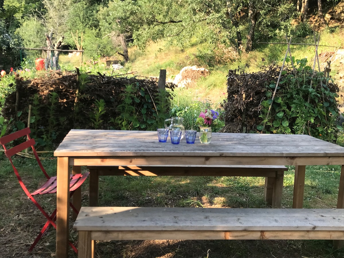 Take it easy at this unique and tranquil getaway. Lovers of nature, history and mysteries are ideally housed to visit the highlights of our region. 1.5 hours from the historic city of Carcassonne, 10 minutes from Rennes-les-Bains, 15 minutes from Rennes-le-Château, 5 minutes from the Fountain of Love, 5 minutes from the Saltz springs, your stay will be fulfilling, everything is there to promote a deep reconnection to your state of Presence here and now.