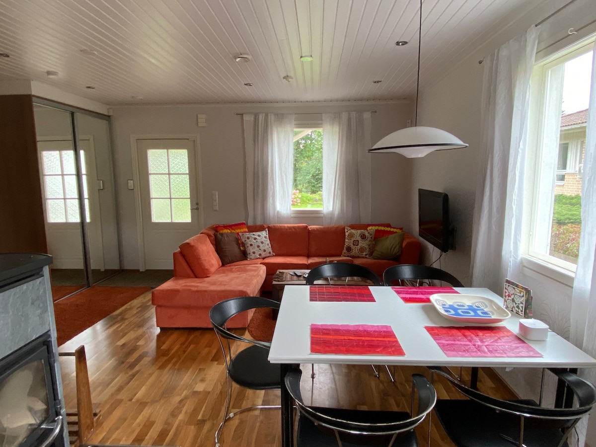 The apartment h+kitchen+wc is located in the courtyard building, the shower is on the lower floor of the main building (private entrance). Two cats roam freely in the main building and yard. The city center is about 4 km away, Yyteri about 17 km. The nearest store is 1.2 km away.