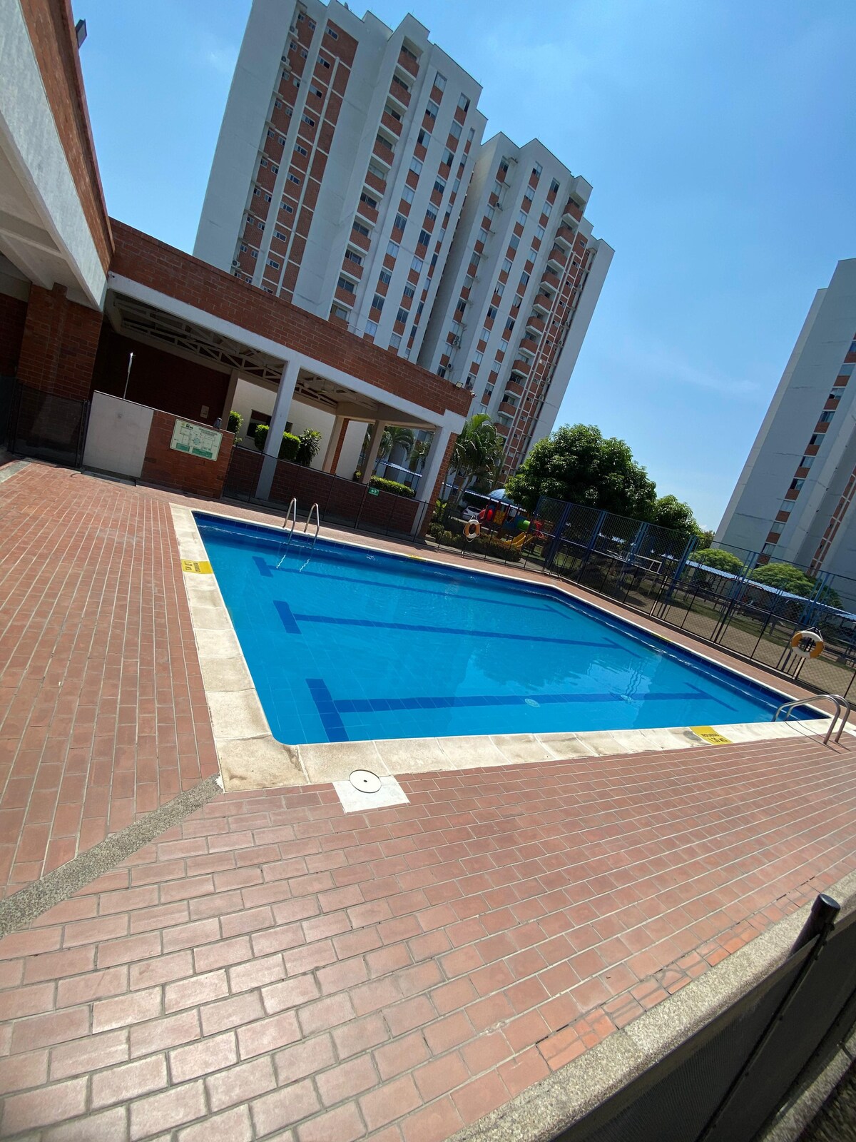Luxurious first-floor apartment with air conditioning in Goya complex, Cra 5 No 36 30 Sur Sleeps 6 You'll find: ✓Located on the first floor ✓Air conditioning in the living room and fans in the bedrooms ✓2 TVs ✓Three bedrooms ✓3 beds ✓ Fridge, washing machine, stove ✓Parking ✓Pool (Wednesday to Sunday) ✓ Location near Unicentro shopping center ✓ Self check-in ✓ Minors must be accompanied by an adult relative