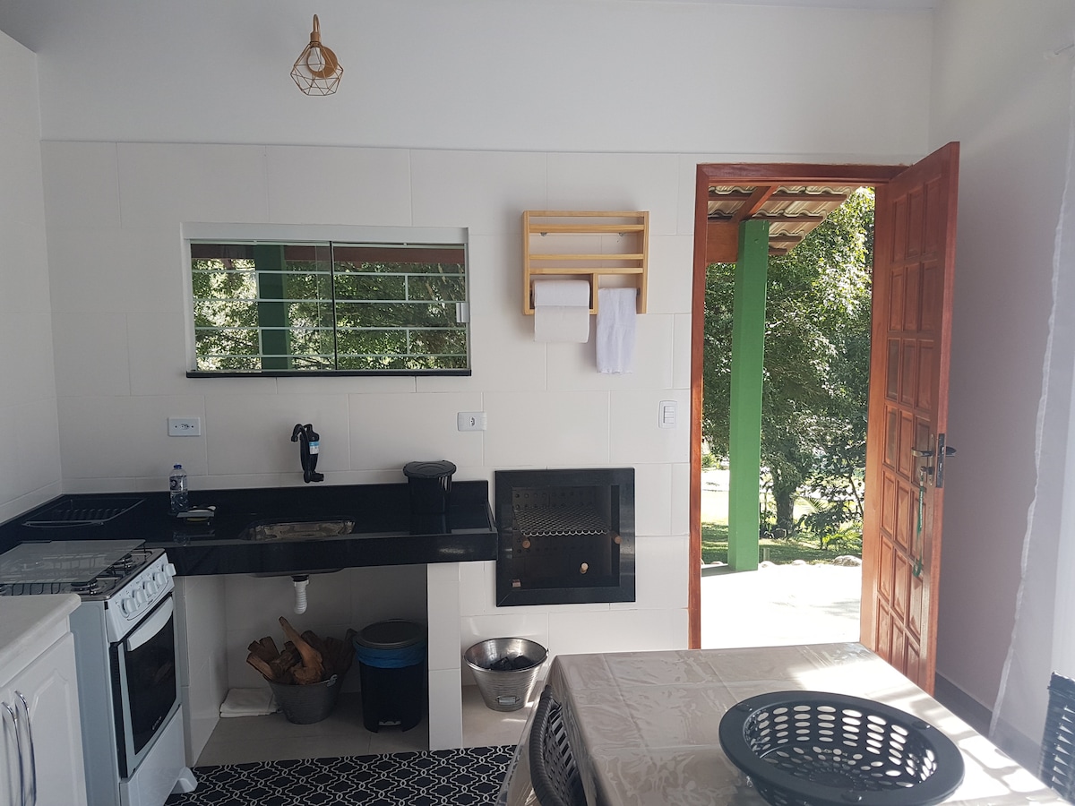 Located in the heart of an agroecological reserve, with forest and riverside views, Chalé da Lua features a private deck, a fireplace, Wi-Fi (fiber optic), a minibar, and a queen-size bed. The Bellatrix Sanctuary has forests with marked and self-guided trails, a pure and crystal clear river, as well as decks and gazebos for yoga, birdwatching and contemplation. We offer a shared industrial kitchen that can be used by guests. Event and party space