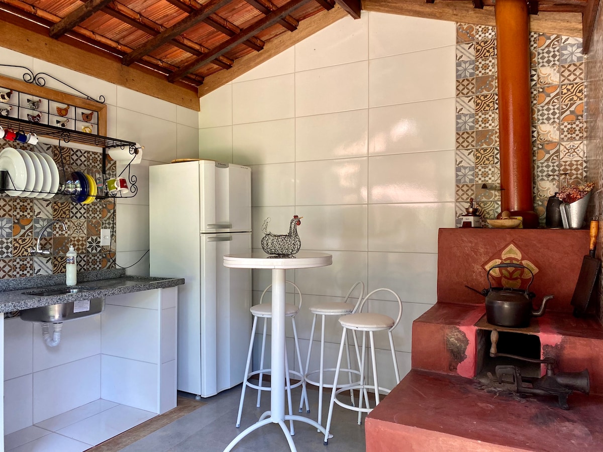Refúgio das Juçaras is a typical forest house, rustic, clean, cozy and surrounded by giant stones that make the land enchanted. The house is within an Environmental Protection Area, embedded in nature, including juçara palm trees, ferns and other beauties of the Atlantic Forest. At the bottom of the land passes the crystalline Alambari River, which separates our land from the Itatiaia National Park. The house is in a region close to the emerald wells of Serrinha. It's an enchanted place!