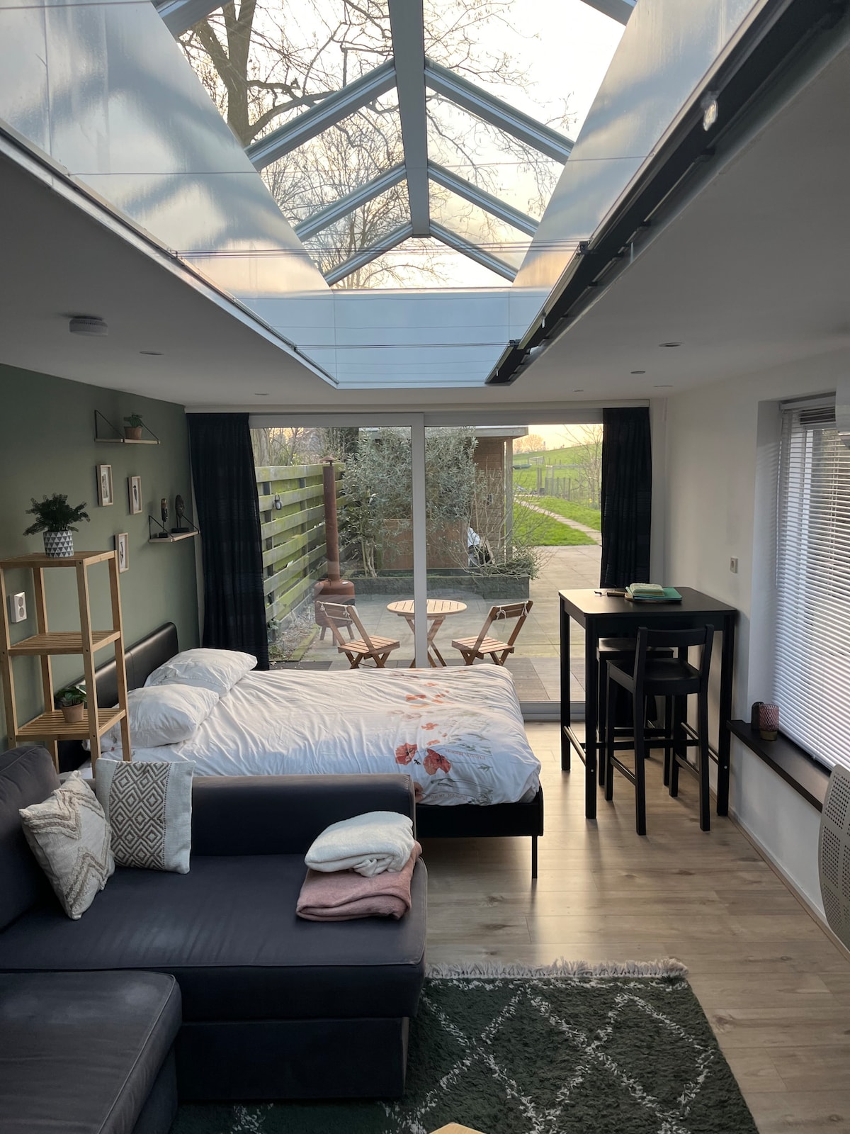 The tiny house has everything for a wonderful stay on the Veluwe and is approximately 10 minutes from the center of Arnhem. The house is located near the Warnsborn estate, National Park, Burgers Zoo, Open Air Museum and on MTB and cycling routes. The bus stops in front of the house. The house consists of a cozy living room/bedroom, bathroom and a fully equipped kitchen (with even dishwasher and espresso machine )