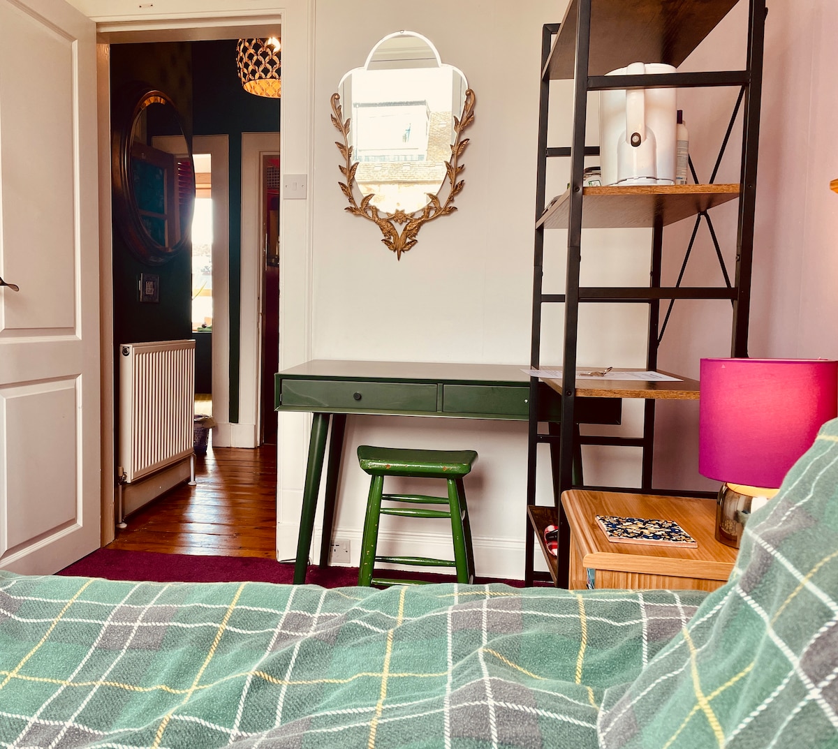 A self contained ensuite in on the top floor of a beautiful colony townhouse in East Edinburgh with lovely views. Large room with a double bed, large sofa, table, smart TV, kettle, wardrobe and full large bathroom with towel rail. Perfect for those looking for a large self contained space that’s a quiet retreat from the busy / noisy centre but still within easy reach. Note: Currently looking for a live in part time cleaner / dog walker if anyone is looking for something more long term
