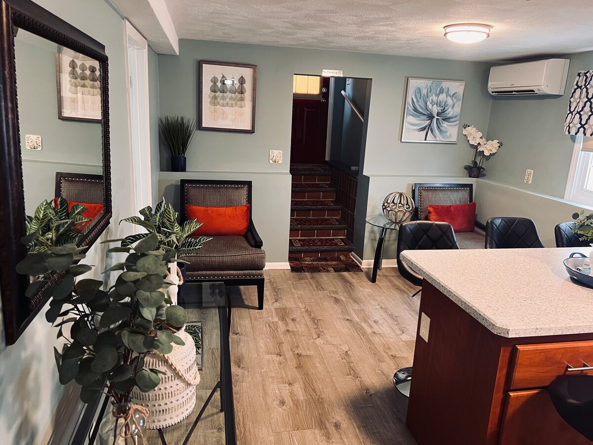 Stay in this fully renovated suite featuring a King-size memory foam bed designed for your comfort. 🚗 Private driveway & entry for easy, stress-free parking. 🍳 Fully equipped kitchen with modern stainless steel appliances, including a gas stove, microwave & dishwasher. 🛁 Private bathroom with relaxing Jacuzzi tub. 🍽️ Dining area, work desk, high-speed Wi-Fi, and Smart TV for your convenience. 🌟 Relax in comfort near Boston, read our glowing 5-star reviews!