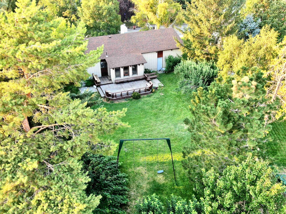 Welcome to the Red Brick Haven! With nearly 5,000 sq ft on 10+ private acres, this spacious retreat sleeps 24+ & is perfect for retreats, reunions & memory-making. Enjoy a private swim/fishing pond, firepit, trees galore & heated sports barn with basketball, weights & pool table & grand piano. Located across from Teton Lakes Golf Course & minutes from downtown Rexburg/BYUI. Peaceful, scenic, & packed with fun, plus a short drive to Yellowstone, Kelly Canyon, Targee & Grand Teton National Park!