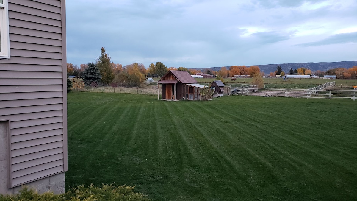 Quiet and comfortable, private and spacious, in the middle of the best outdoor adventures in North America. Relax in the theater, in front of the fire, or exercise in our weight room. A short drive to Heise Hot Springs or get first tracks at Kelly Cayon Ski Resort. A little further and you could spend the day in Yellowstone, the Tetons, Craters, or the Sawtooths. Or explore our small acreage farm and enjoy our eggs, honey, apples and pears, or eight varieties of garlic, depending on the season.