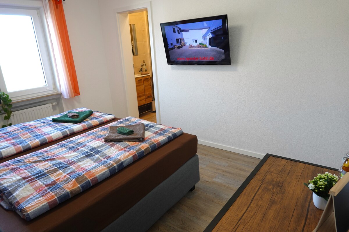 Hallo, Ich biete Zimmer in einer kleinen Pension im schönen Westerwald. Wir haben ein großes Doppelzimmer mit Dusche, WC und TV. Zwei weitere Doppelzimmer mit TV und Waschbecken sowie Toilette und Bad auf dem Flur. Das große Esszimmer kann von allen Gästen genutzt werden und ist mit Besteck und Geschirr gut ausgestattet. Frühstück ist im Preis mit inbegriffen! Die Terrasse ist ebenfalls für alle Gäste frei zugänglich und bei schönem Wetter lässt es sich hier super aushalten:)