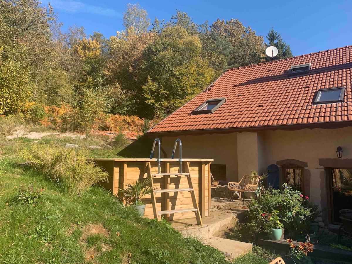 From Geishouse, a mountain village in the Ballon des Vosges Regional Park 750 m away, you can visit Alsace, hike or simply relax on site. This semi-buried and comfortable cabin offers stunning views of the village and natural landscape. It opens entirely onto your private terrace in the beautiful flower garden. All year round you will enjoy the many spaces of the garden and in summer the shade of the large trees at the edge of the natural pond.
