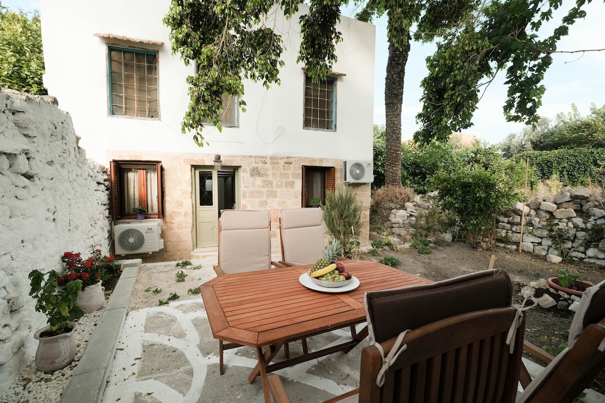 Recently renovated neoclassical house , built with Italian influence. Consisting of first and ground floor with private backyard and a dipping-pool with jacuzzi functions. The ground floor can host up to 2 persons on the sofa-bed , having at its floor a private bathroom, the kitchen and the backyard. The first floor can host up to 2 more persons with a queen-size bed , a chilling area and a private bathroom. Our home is located in one of the most traditional areas in the center of Rhodes.