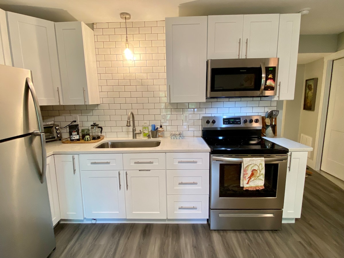 Enjoy your private, pet friendly suite in the heart of West Asheville! This cozy hideaway comfortably sleeps 4 and features a separate entrance, private covered porch, and a kitchenette. Perfectly located, you're just a 10-minute walk from Haywood Road's famous breweries and brunch spots, and a short drive to downtown and the Biltmore Estate. Ideal for couples, small families, and pet lovers looking for a quiet retreat with easy access to everything Asheville has to offer. Wooded lot for birding