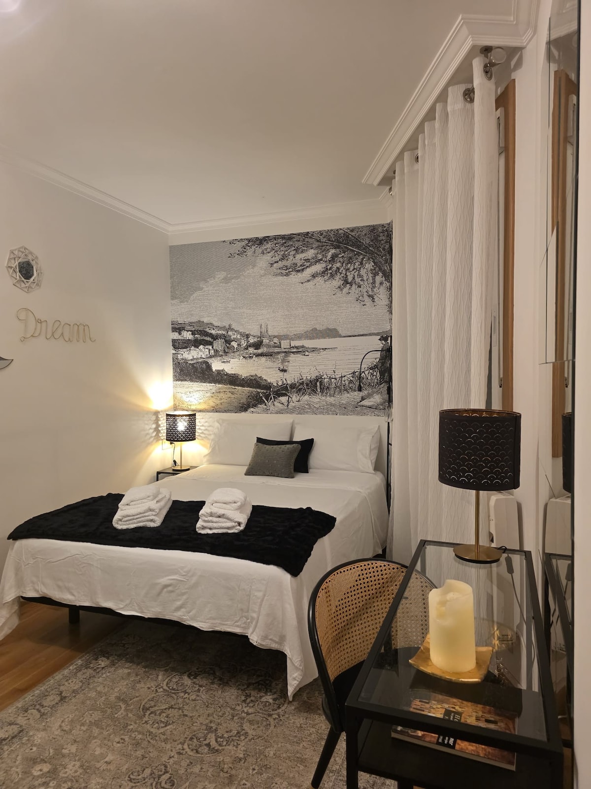 Una experiencia de lujo en este céntrico y luminoso apartamento equipado como una suite de hotel. Edificio histórico. El dormitorio, presidido por una confortable cama King size, Smart TV, balcón y un baño completo. El salón cuenta con una coqueta cocina americana, un comedor, Smart TV de gran formato, una cómoda mesa de trabajo junto al ventanal y un sofá- cama. Dos ventanales de tres metros de altura con balcones que se asoman a la “Puerta del Sol de Vigo”. Próximo al puerto- Islas-Cíes
