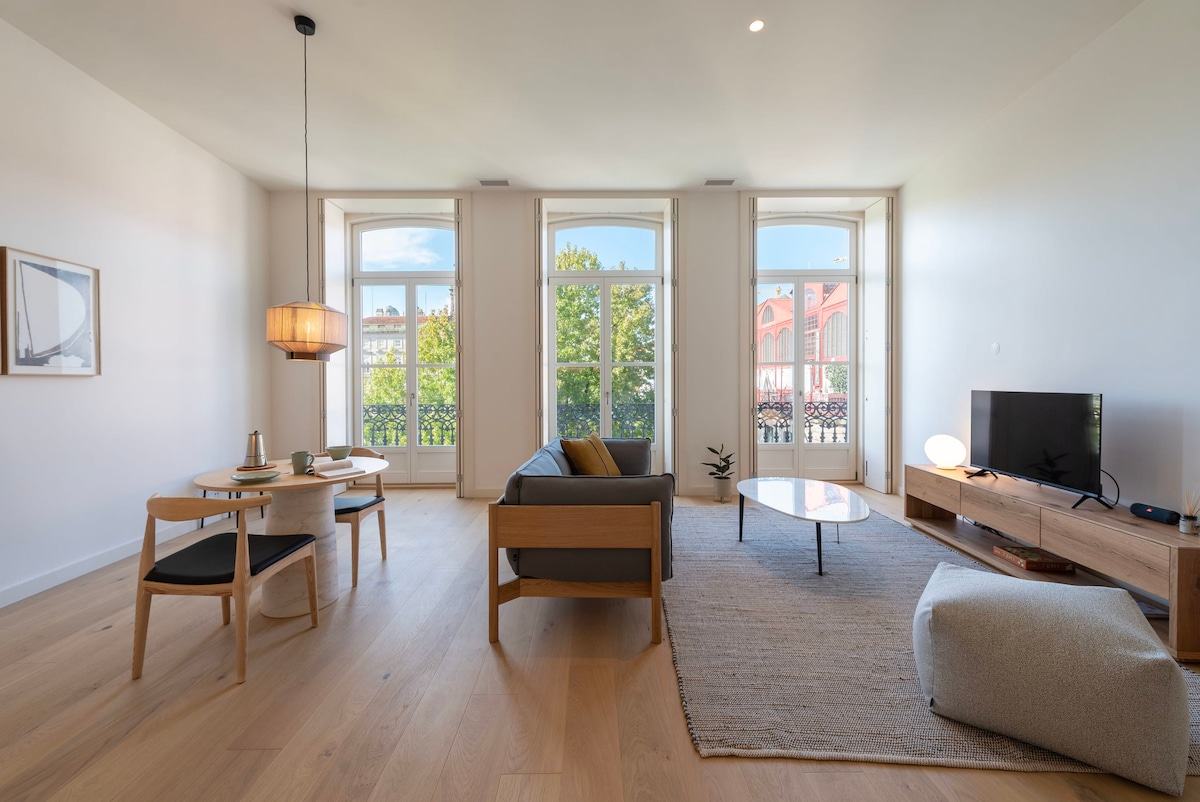 Beautifully curated apartment in the heart of Porto. Designed and decorated with attention to every detail and original artworks by local Portuguese artists. Perfect for two couples or small family. Both living room and bedroom are bright and have balconies overlooking the beautiful Bolhao Market. One bedroom with a queen size bed and a couch bed that folds out to queen size.Perfectly located, near major attractions, restaurants and metro stations. This is a one-of-a-kind home!