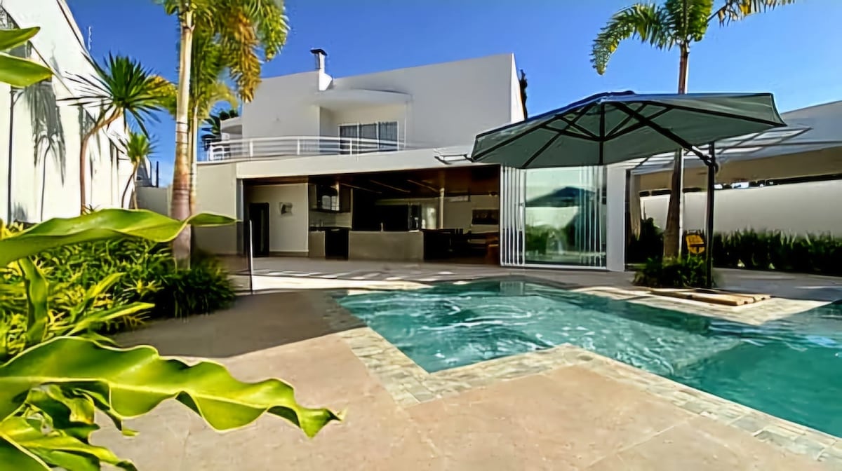 Furnished house with 4 air-conditioned bedrooms and a complete leisure area with a swimming pool and barbecue grill. Totally safe space and ideal for family gatherings and parties. We are in one of the most upscale neighborhoods of Ribeirão Preto, Jardim Botânico. Our location offers easy access for those attending graduations and events, being 10 minutes from the Taiwan Events Center and 15 minutes from the Golf Space. The house is in a region with easy access to markets, malls and restaurants.