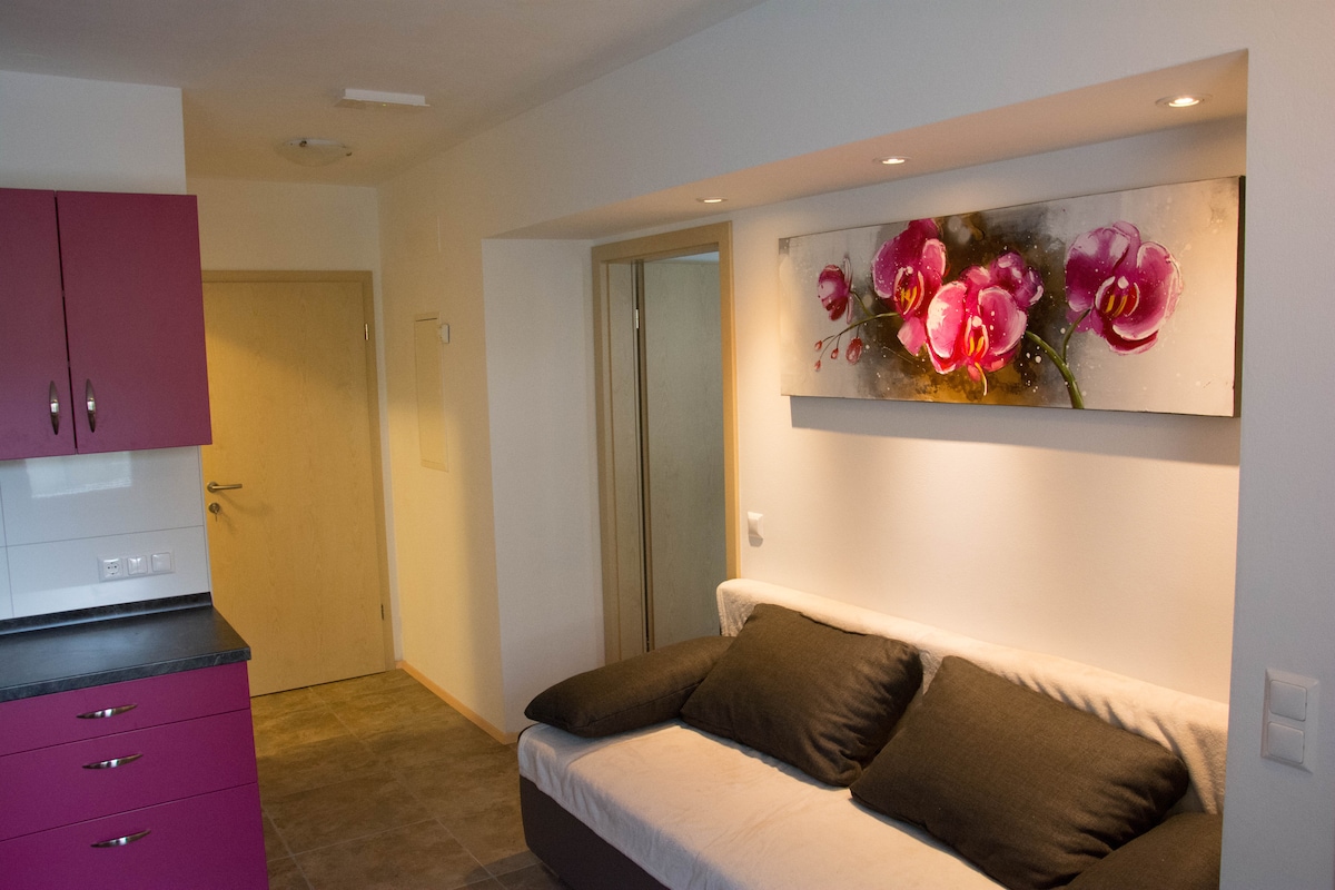 Apartment Chilly is situated in a peaceful area Mlino, 800m/10min walk to Lake Bled. Apartment is all new, cozy and warm. You will have unique view on the mountains from the bedroom and terrace. On the garden you will have your own private hot tube and infra red sauna. Hot tube can be used all year between 10- 22h. Evenings here are magical because of beautiful sunsets and sounds of nature. Our place is good for couples, friends, solo adventurers, business travelers, and families (with kids).