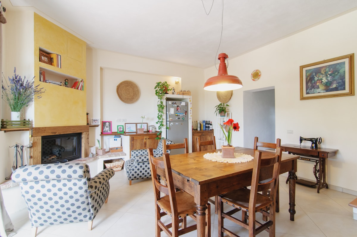 A wonderful place to spend a few days in pleasant company. A large living room with fireplace where you can relax after returning from beautiful walks, bike rides, and excursions. The independent apartment is 15 km from Siena, 20 km from the Thermal Baths and 40 minutes from the villages of San Gimignano and Monteriggioni. Overall, there is a farm that produces wines and oil with the possibility of guided tours and tasting of our products with themed dinners.