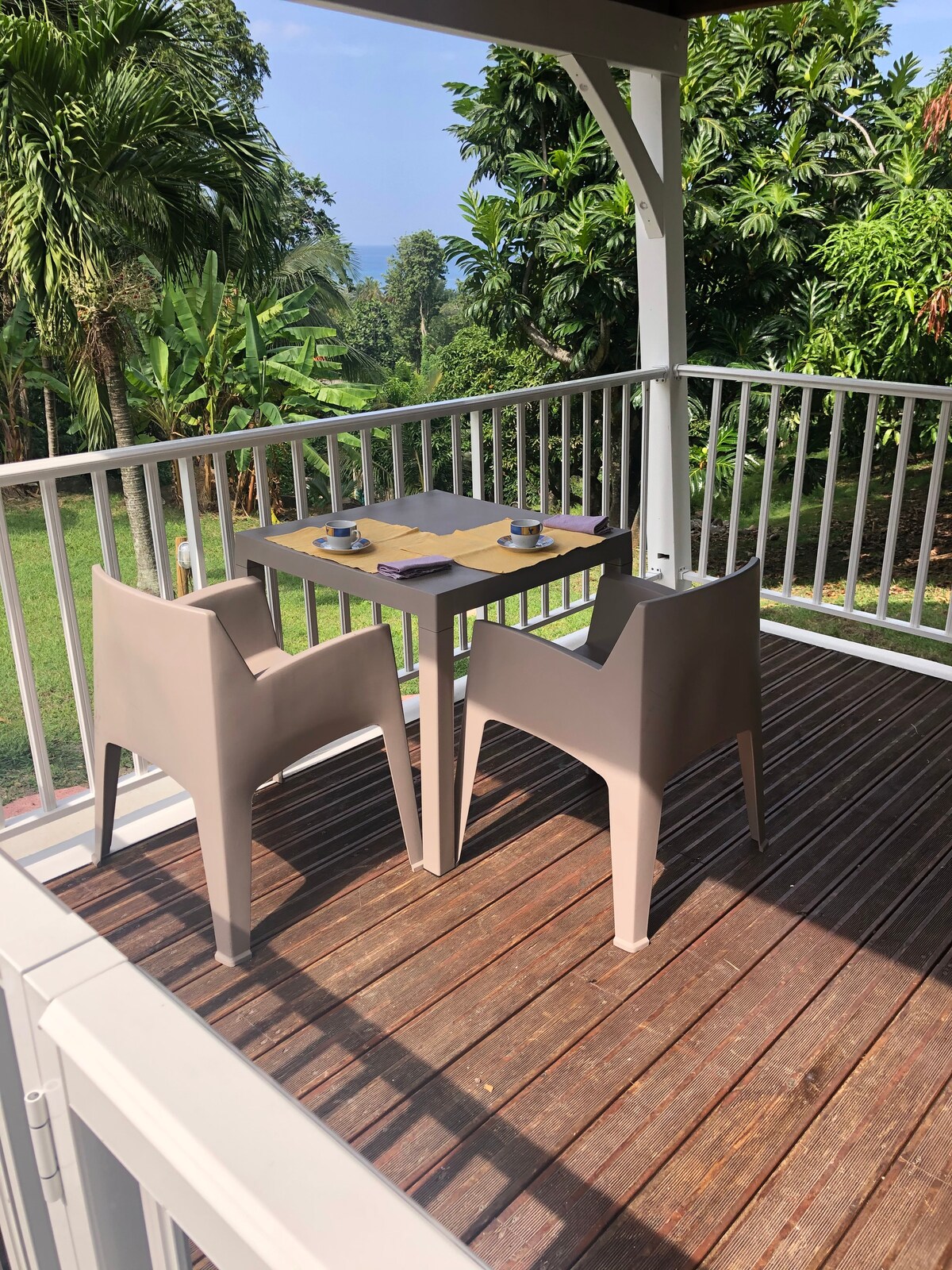 Ici vous serez chez vous. Bienvenue dans votre petit coin de paradis lové au coeur de la belle forêt tropicale de notre propriété. Avec sa terrasse sur pilotis, ce bungalow flambant neuf offre une vue exceptionelle su la baie de Grande Anse. Situé en contrebas de notre maison, un petit ensemble intimiste de 3 bungalows vous attend au calme, chaque bungalow est isolé dans sa petite bulle de verdure où vous pourrez profiter pleinement de votre jacuzzi privatif.