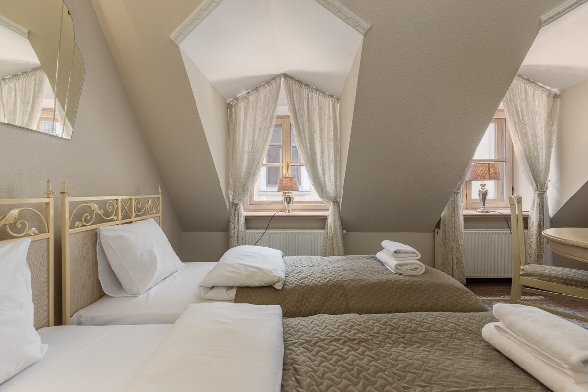 Located in the heart of Old Town, this twin room in a charming self service hotel combines classic hotel furnishings with modern touches, creating a welcoming and cozy atmosphere. This hotel operates on a completely self-service basis with no on-site staff. Upon arrival, you will conduct a self-check-in using a keybox located on the premises.