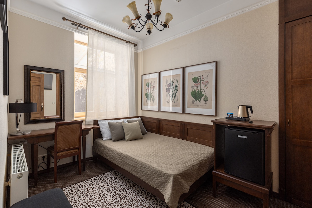 Located in the heart of Old Town, this single room in a charming self service hotel combines classic hotel furnishings with modern touches, creating a welcoming and cozy atmosphere. This hotel operates on a completely self-service basis with no on-site staff. Upon arrival, you will conduct a self-check-in using a keybox located on the premises.