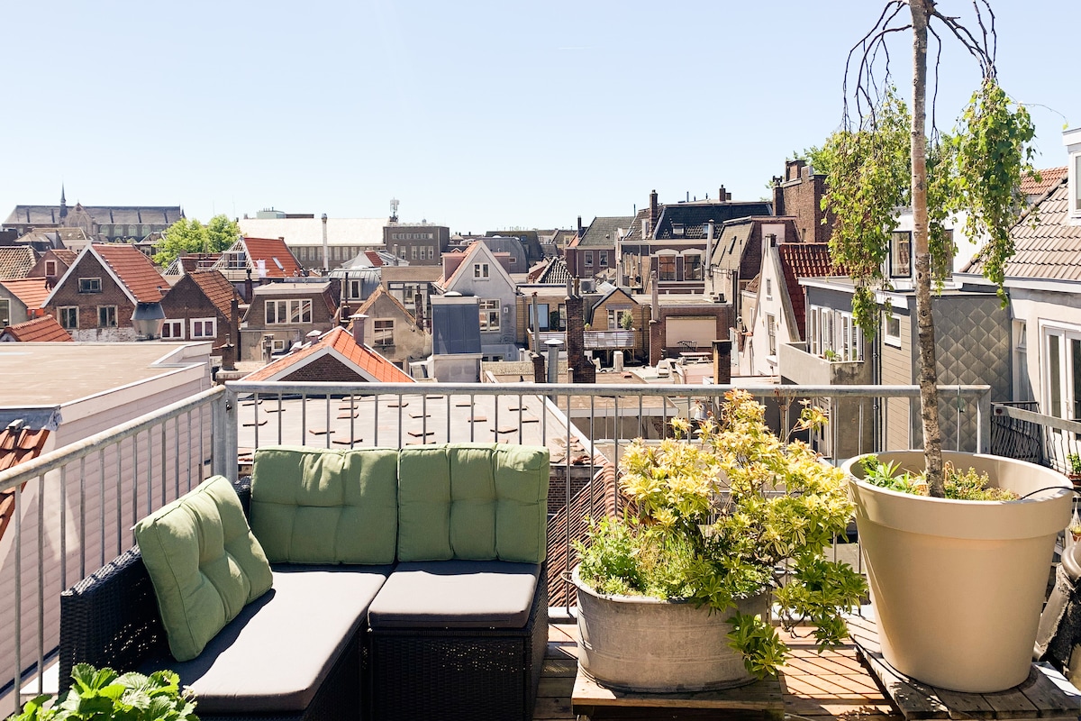 Kick back in wooden Adirondack chairs on the open-air terrace with views of the city center's pretty old buildings. This spacious rooftop retreat combines clean lines with rustic hanging planters and woven wall art for a texture-rich look. We like to inform and help our guests but we respect their privacy. This airy abode sits right in the middle of the city center, just 5 minutes' walk from the train station.