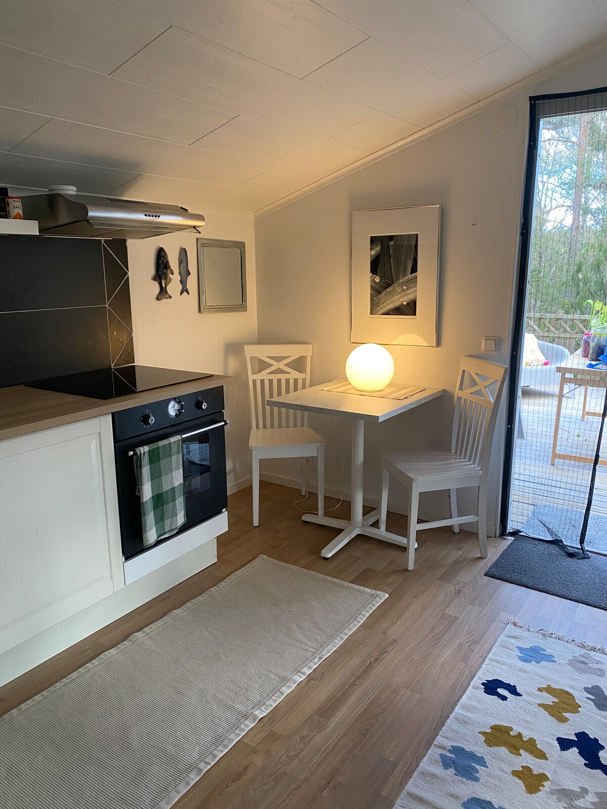 Welcome to this two bedroom + bathroom cottage facing a stunning southerly view over the archipelago of Stockholm, and with a private jetty for swimming and relaxing. Attached mountainbikes/bikes, kajaks, sauna and hottub are for guest disposal. Suitable for couples or the small family to enjoy a relaxing stay at the port of Stockholm, with nature at your doorstep. Private sitting area outside cottage, with fully equipped outdoor kitchen, barbecue possibilities and view over the ocean.