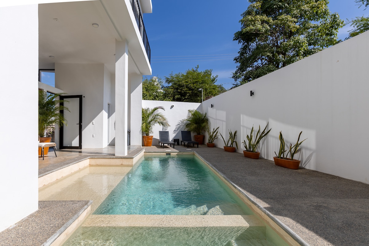 Discover the magic of our residence in Vallarta, just 90 steps from the beach. With private and privileged access, located in the safest and most beautiful area of Puerto Vallarta, with pedestrian walkways leading to the snorkeling spots. Relax in our private heated pool. Nearby, you'll find pharmacies, restaurants, and a spa. Live this unique experience in Nuevo Vallarta. It's worth noting that our beach is famous for its cleanliness and lack of rocks, ideal for swimming and enjoying