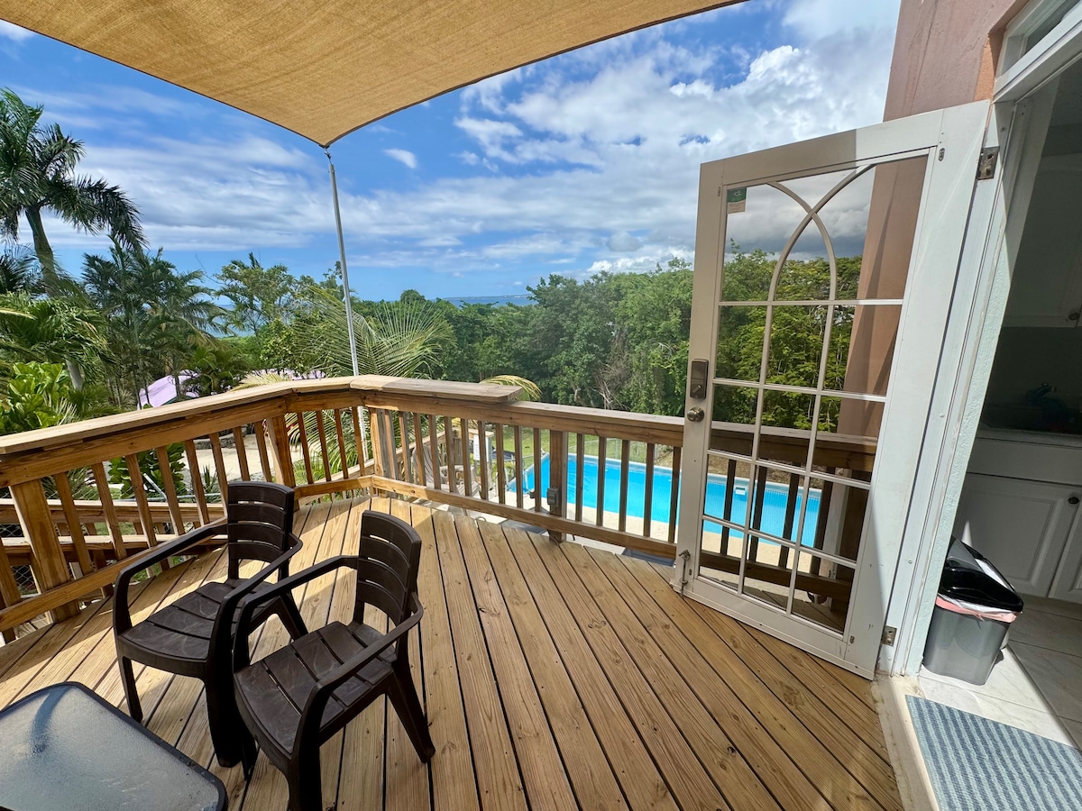 Recently refreshed studio near Sandy Beach with king bed, full bath, AC, WiFi, workspace, kitchen, dining area & private deck. Located on the lower level of a two-level home with private entry, single parking space & shared above-ground pool. Enjoy hilltop breezes, gorgeous ocean and valley view! Perfect for relaxing or exploring Rincon’s best beaches, restaurants & attractions—just off the famous Route 413, the road to happiness!