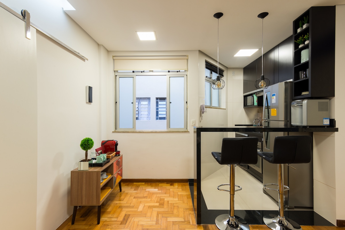 Amazing location! Light-filled apartment in boutique building in Funcionários/Savassi. Restaurants, bars and shopping abound. Furnished impeccably with custom art and furniture. Two smart TVs. WiFi with high speed internet-300 MBPS. Washer and dryer. Air conditioning/heating, electric showers. American-style kitchen with full sized oven and refrigerator, microwave, etc. Hot/cold filtered water in kitchen. Iron, hair dryer, towels, sheets, hangers-everything you need for a comfortable stay.