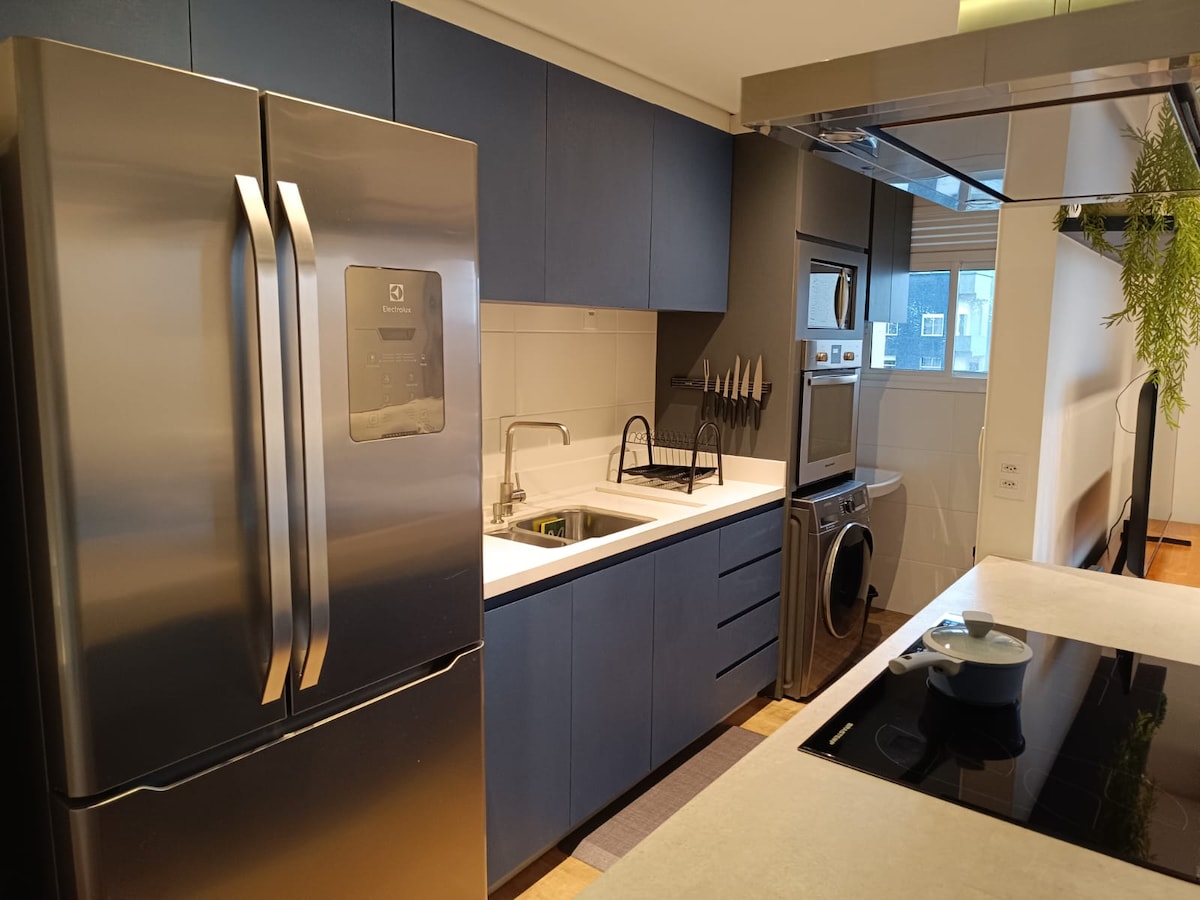 Modern Studio, in the Civic Center — ideal for those looking for comfort, practicality and excellent location in Ctba. Air-conditioned environment, equipped kitchen and Smart TV — perfect for leisure or work. 🛏️ It accommodates with comfort up to 4 people, quality bedding. • Heated pool • Gym • Sauna • Terrace • Laundry (paid) 🚗 Parking available in the building, R$35 per night Pago via PIX to host.