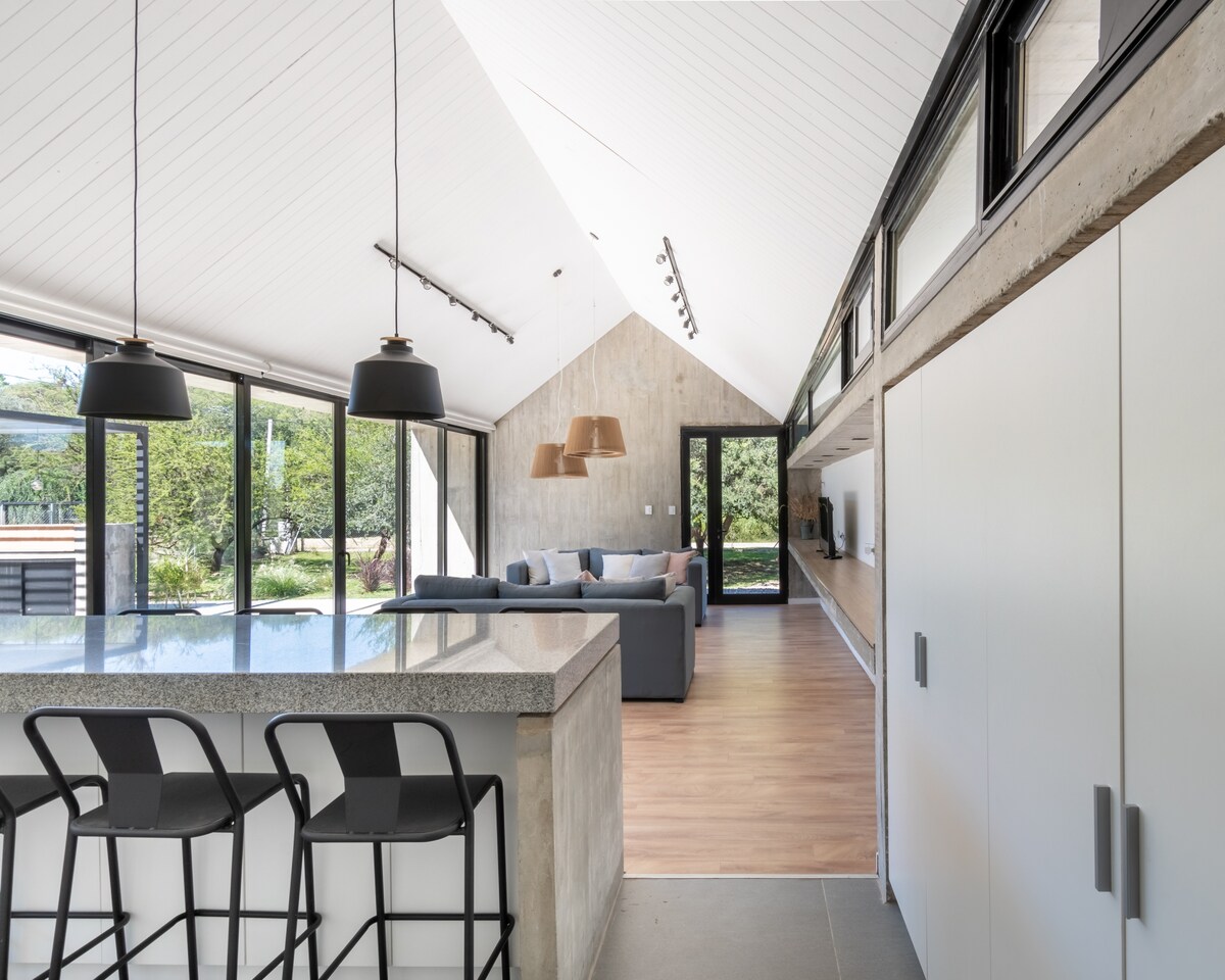 Relax in this unique and quiet accommodation. With a very special location, this house stands out for its natural and quiet environment. You'll only hear birds, the wind, and the leaves of the trees. This beautiful and comfortable house will make your vacation a place of rest and enjoyment. A few meters from the El Chorrito stream and trails where you can hike to enjoy the mountains. It is also 15 blocks from downtown La Falda, with a great gastronomic offer.