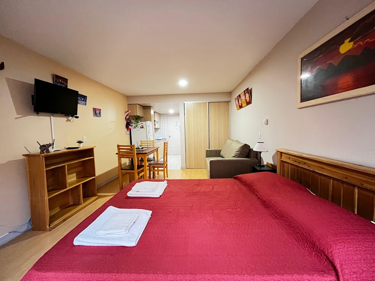 Departamento céntrico. Moderno, luminoso y accesible. Rodeado de locales comerciales, medios de transporte, shopping y el hospital municipal. Ubicado en Planta Baja, edificio con cámara de seguridad y calefacción de piso regulable. Acogedor y confortable, cuenta con un sommier de dos plazas, sillón, baño y cocina completos. Las toallas y sabanas están incluidas. TV smart y WIFI incluido en la unidad. El estacionamiento es libre en la calle. *Bandeja con alimentos para desayuno incluida*