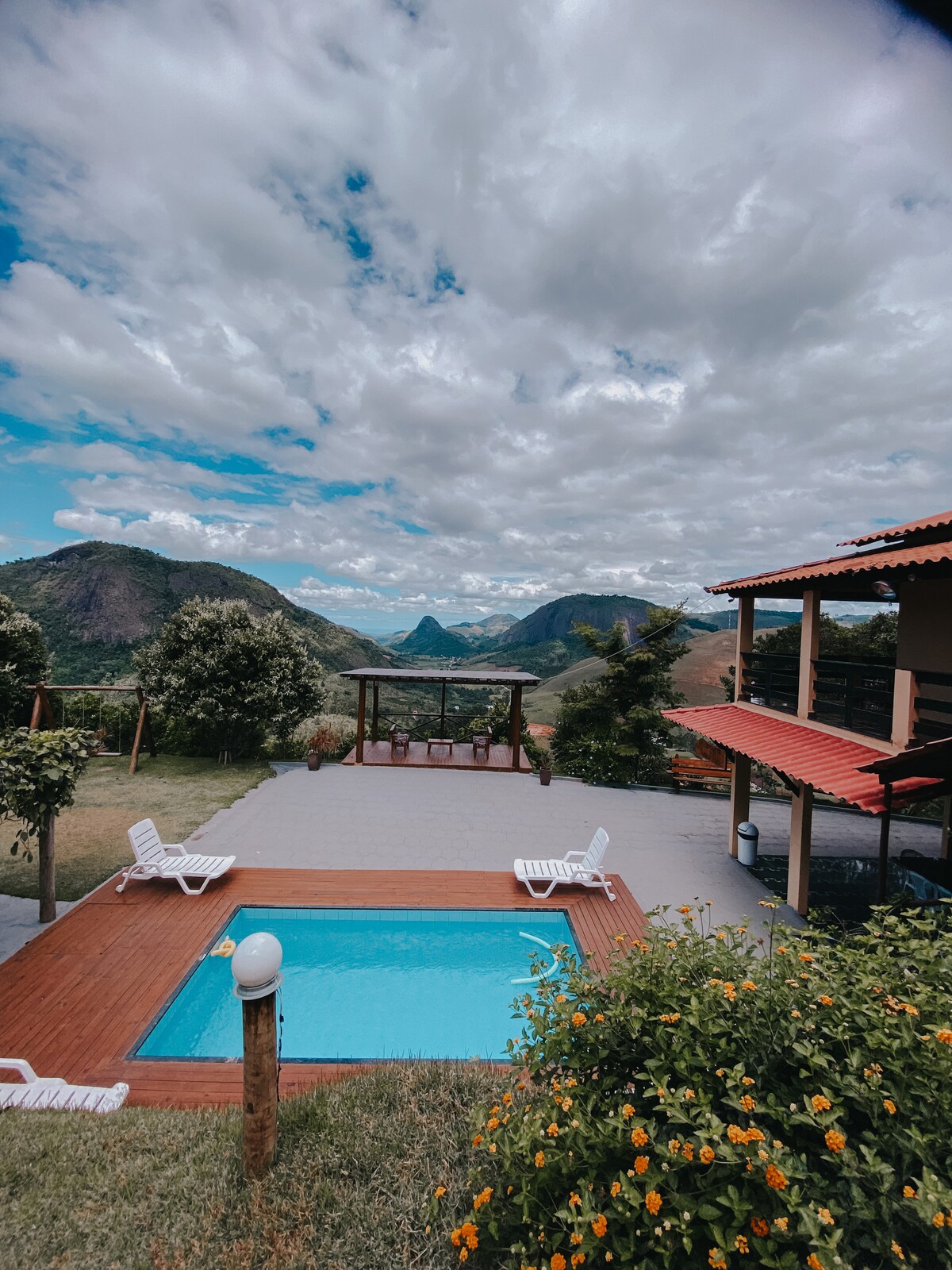 Sítio Cristo Rei is the perfect getaway in Pedra Lisa Alta (Iconha/ES). Surrounded by nature and lots of green areas, it has a stone pool, barbecue, pizza oven, wood stove and sauna. A large space with a beautiful view and a quiet atmosphere, ideal for relaxing and enjoying special moments with family and friends. 🌿✨