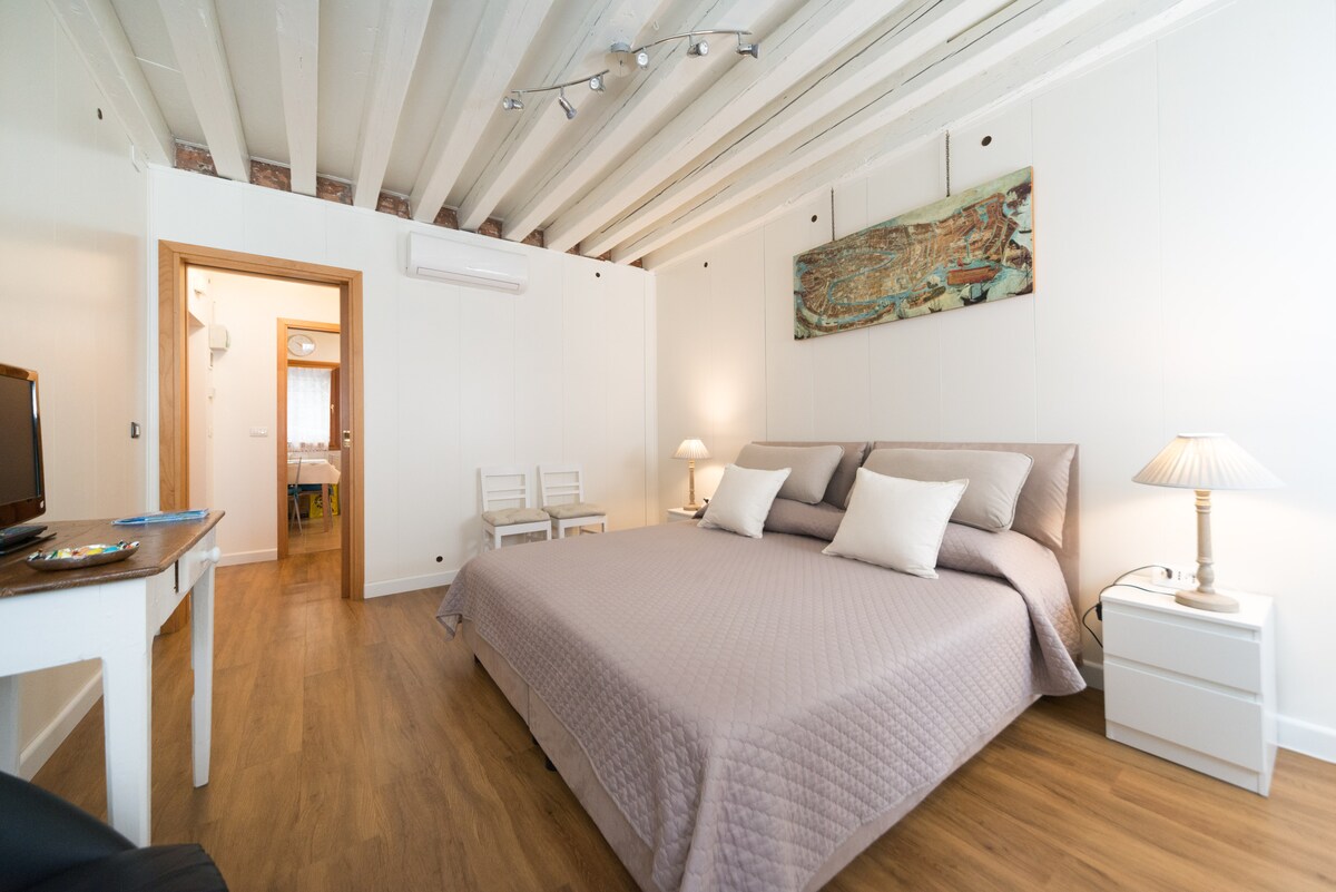 CANAL VIEW NOT TO BE MISSED 👍 The beautiful canal view will make your stay truly unique. Spacious and bright apartment located in the heart of Venice, perfect for experiencing the city like a true Venetian. Elegant finishes, a large living room and a fully equipped kitchen offer comfort and space. Fresh fruit and vegetable markets and a supermarket are just a short walk away. Ideal also for longer stays, with a sofa and a dedicated work area.