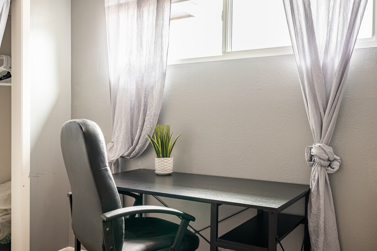 Welcome to our charming 2-bedroom, 2-bathroom house with a queen size memory foam folding mattress, nestled in the vibrant city of Albuquerque, New Mexico, just North of Downtown. Whether you're here for a weekend getaway, exploring the culture and cuisine, or on a business trip, our cozy home offers a perfect retreat for your stay. Feel the warmth and comfort of our thoughtfully designed home with 2 spacious bedrooms, 2 bathrooms, and living room that can comfortably accommodates 6 guests.