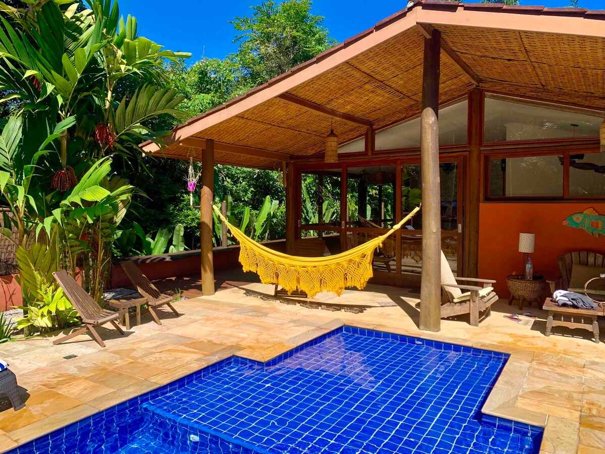 Incredibly charming, our Little House is located within the Atlantic Forest. From it we can observe birds of all species, toucans and squirrels are a show apart. The house is at the top of the Itamambuca forest and is always cool. We have air conditioning. The water comes straight from inside the forest and is very good for drinking and bathing. The Casinha is all fenced in and your pet can be safely let loose. We organize trails, surf lessons and sessions in the best conditions.