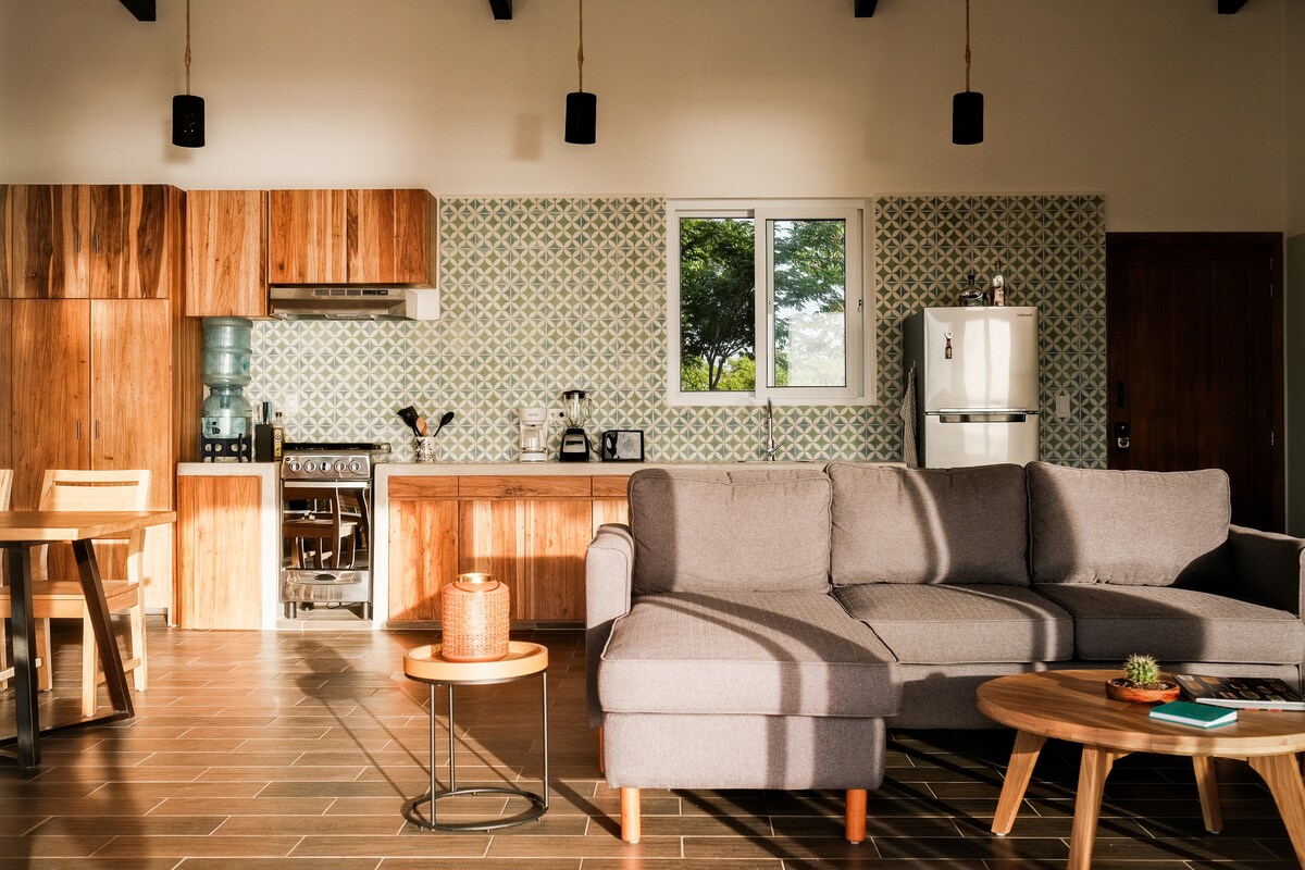 Casa Culebra: Rustic charm meets modern comfort in this single-level Airbnb nestled within Balcones de Majagual. Enjoy breathtaking ocean and jungle views from this open-air, private sanctuary. With 2 King bedrooms, solar hot water en-suites, and a fully equipped kitchen, it's perfect for a getaway. Cool off in the shared, newly renovated pool just steps away. Located 20 minutes from town and minutes from the beach. Accessible via 4x4 vehicles. High-speed 200mbps fibre optic internet available!