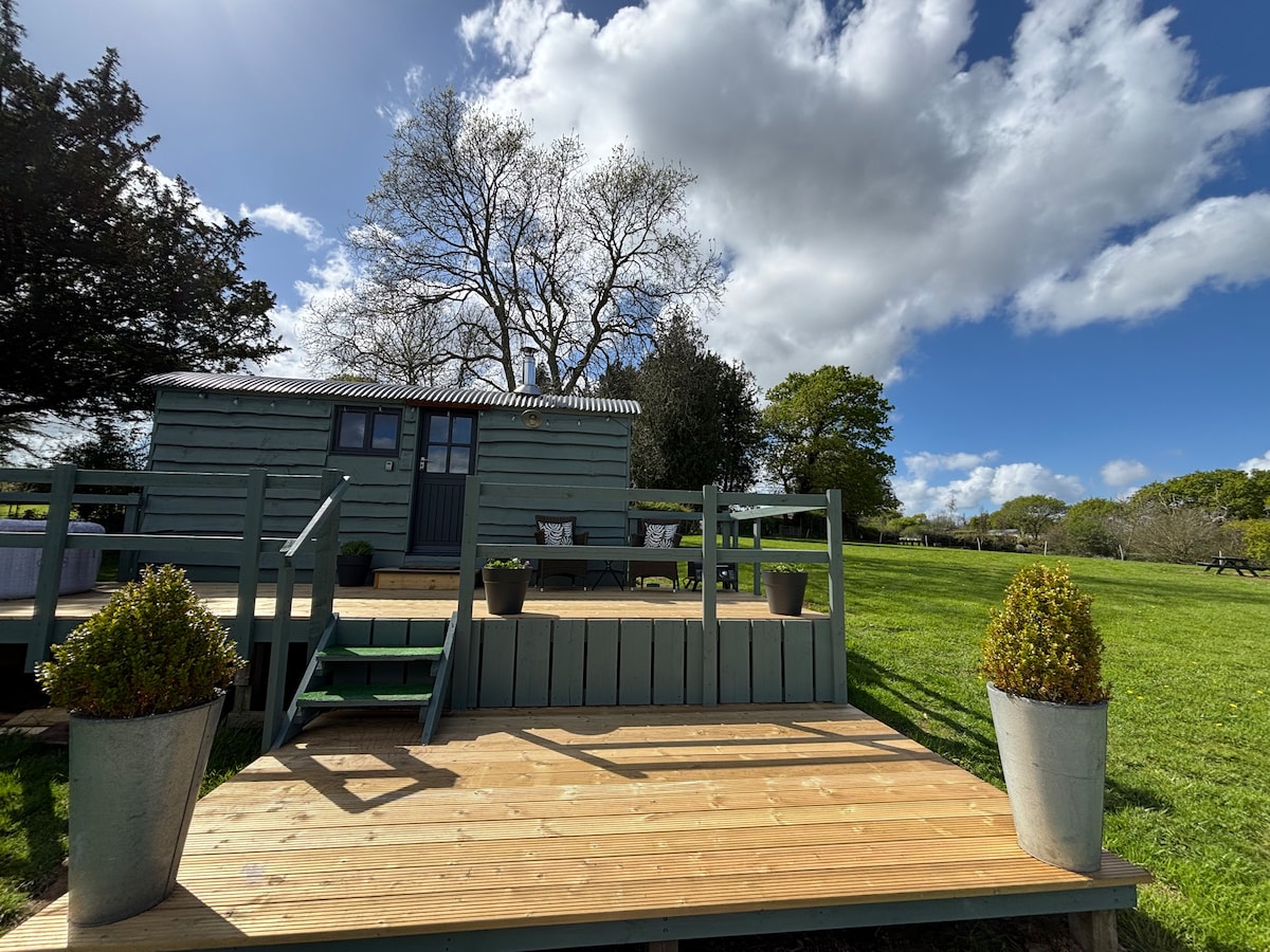 Idyllic Shepherd Hut & location, private hot tub